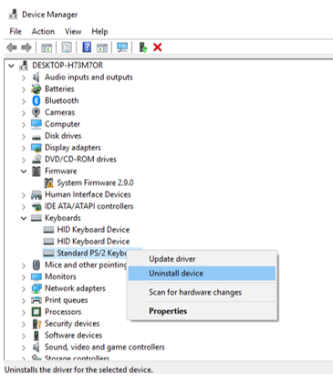 Jika terdapat tanda seru (❗) pada keyboard default (Standard PS/2 Keyboard), kemungkinan besar Windows telah mengesan masalah dengan keyboard komputer riba.